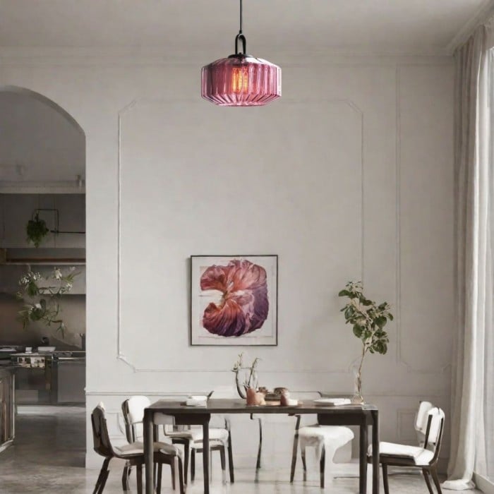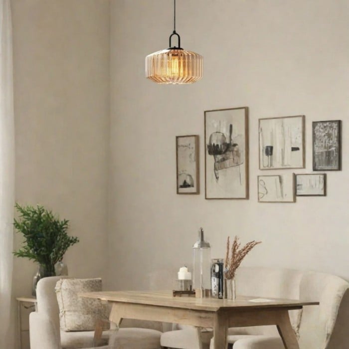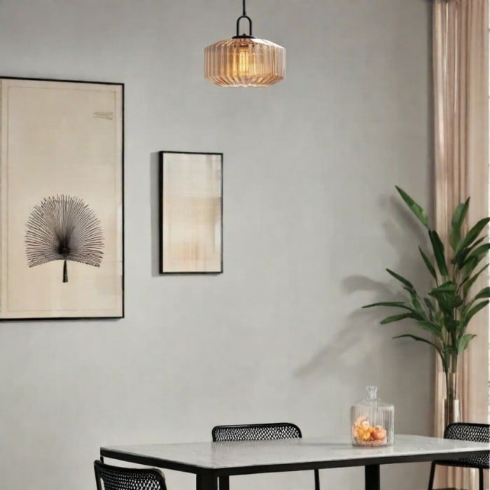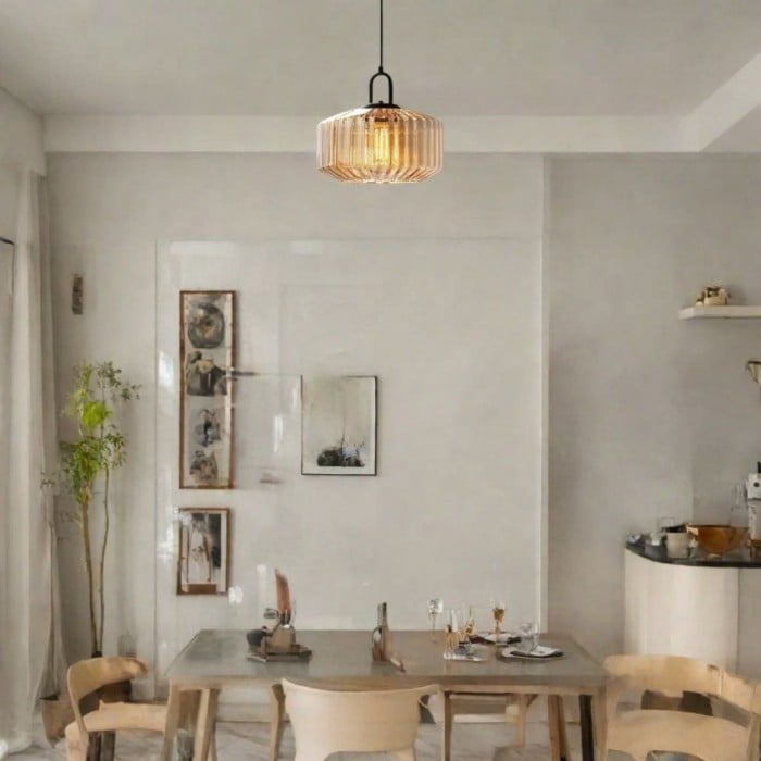 The ribbed glass jar pendant light adds a textured charm to modern kitchens with its curvy silhouette. It is perfect for island kitchens or above counters, and the grooved surface beautifully diffuses light.